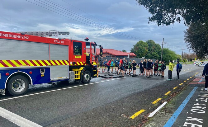One of the highlights for the group and the children of the school, was to see the group pull a firetruck along Havelock Street.